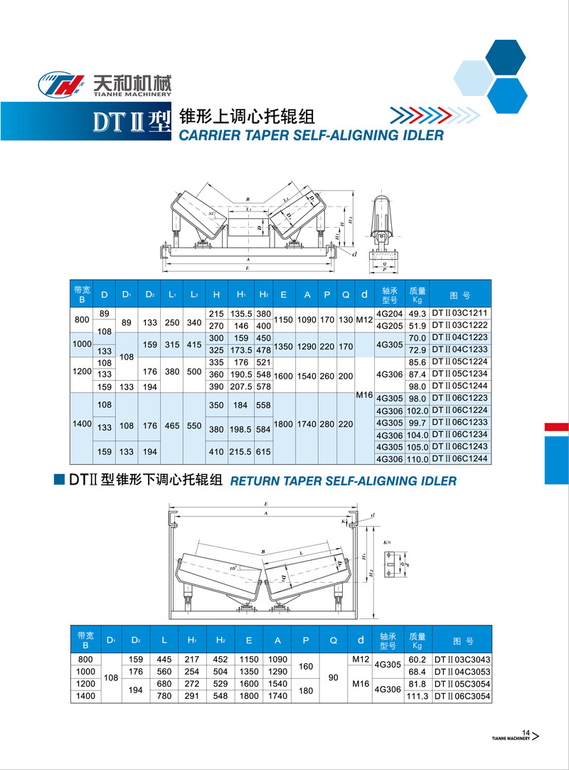 錐形上調(diào)心托輥組 DTII型